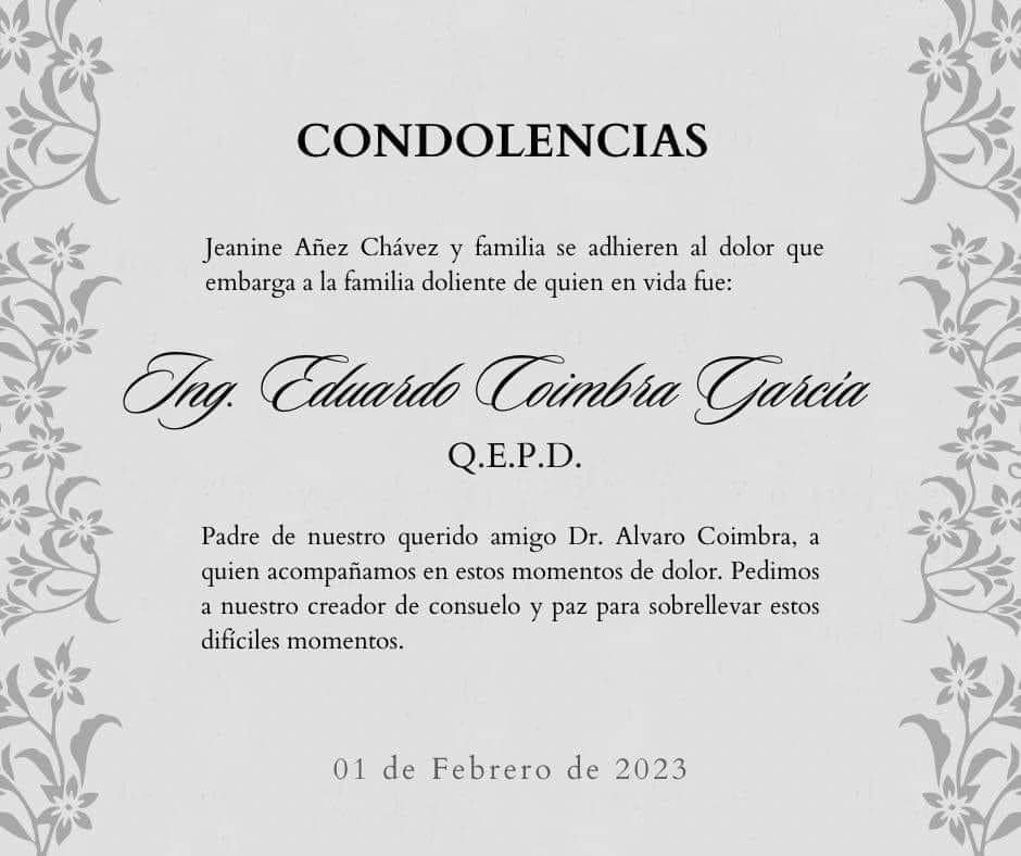 Fallece el padre del Ex Ministro de Justicia, Alvaro Coimbra quien permanece detenido en la Cárcel de San Pedro en #LaPaz. Jeanine Añez expresó sus condolencias a través de redes sociales.