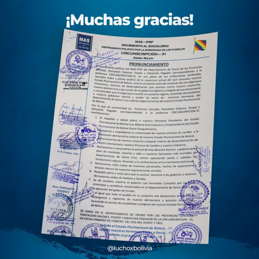 Agradecemos el respaldo de nuestras regiones orureñas del MAS-IPSP agrupadas en …