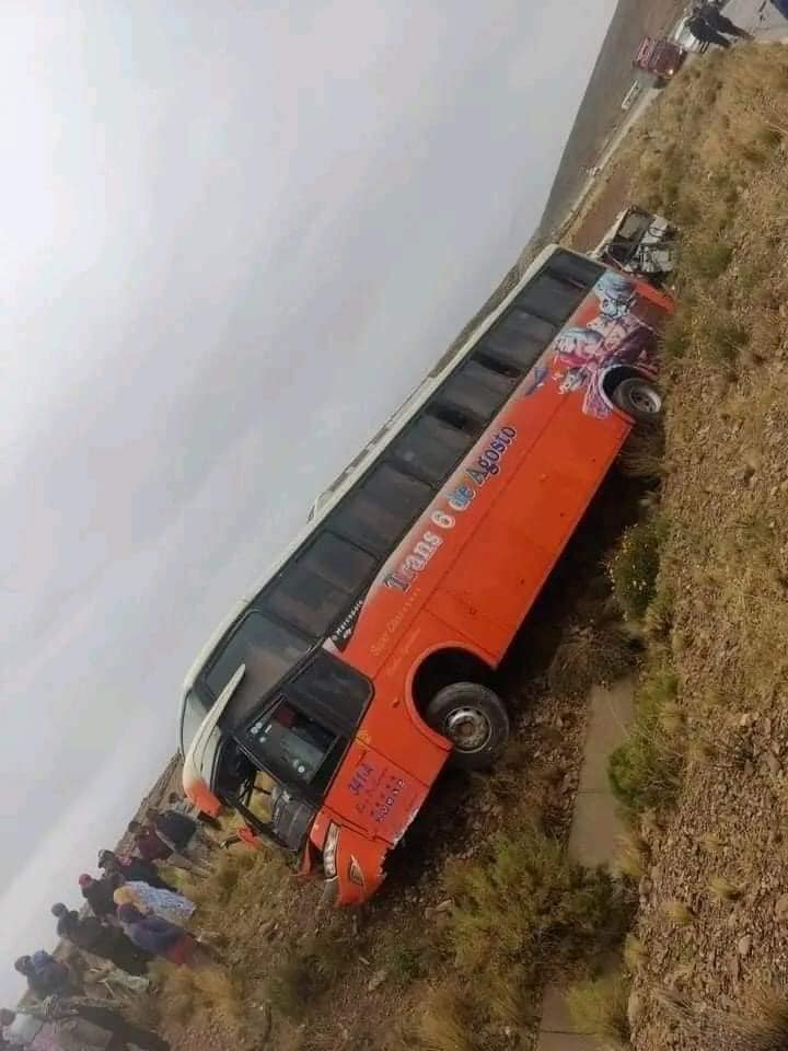 Un bus de servicio interdepartamental, «Trans 6 de Agosto» protagonizó un hecho de transito que dejo tres heridos, el accidente se registró en la carretera Oruro – La Paz, sector #Patacamaya.