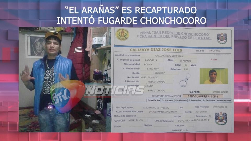 Tras un operativo policial se recapturó al reo J. Calizaya, alias el «arañas» quien fugó de la Penitencieria de Chonchocoro en las últimas horas. Según el reporte policial el reo fue encontrado en la carretera a Viacha.