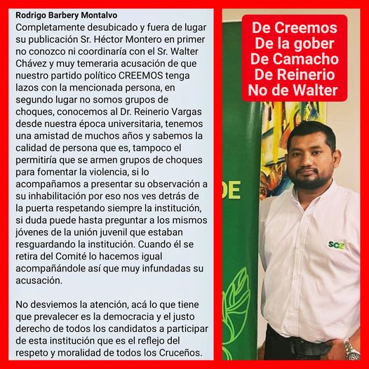 Aunque niega los vínculos con el serrano asesor y jura no ser de los grupos kilomberos; 🗣️ Rodrigo Barbery dejó claringo en su comentario – ver en Don Este – ,