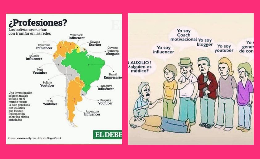 Y Bolivia no está al margen de la «nueva onda»📲📳, en la que contar con seguidores y reconocimiento, será más importante que salvar vidas (de humanos y animales), construir soluciones inteligentes frente al cambio climático y/o ensuciarse las manos para producir alimentos, entre otras opciones prácticas y necesarias para la vida.