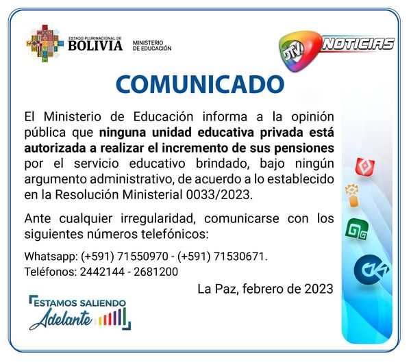 El ministerio de Educación informó que ningún establecimiento educativo privado está autorizado a realizar un incremento en las pensiones escolares.