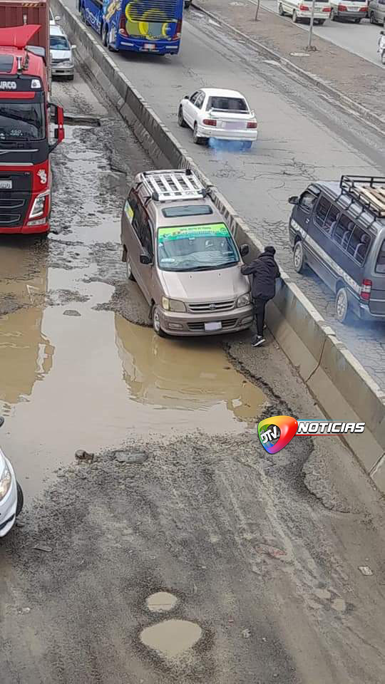 A través de las RR.SS. denuncian el mal estado de la avenida 6 de marzo de la ciudad de #ElAlto, a la altura de la extranca de la zona de Senkata. Los vehículos realizan maniobras para esquivar los huecos llenos de agua a causa de las lluvias.