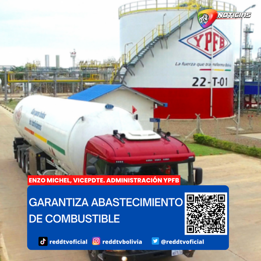 Vicepresidente de administración, contratación y fiscalización de YPFB, Enzo Michel pide calma a la población, afirma que no hay desabastecimiento de combustible, hoy salieron 35 cisternas equivalente a 3 millones de litros.