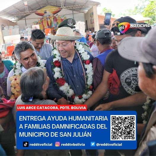 El Presidente Luis Arce Catacora, llegó la tarde de este martes hasta el municipio cruceño de San Julián, para solidarizarse con 600 familias damnificadas por las inundaciones y entregar personalmente, ayuda humanitaria entre alimentos de primera necesidad y vituallas.
