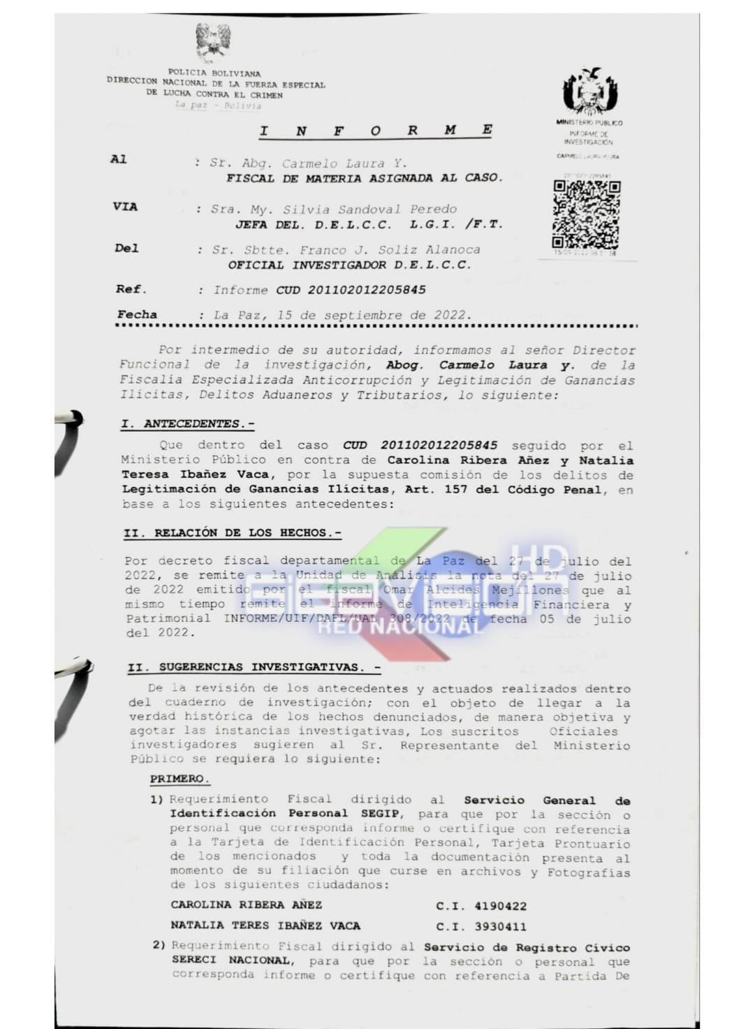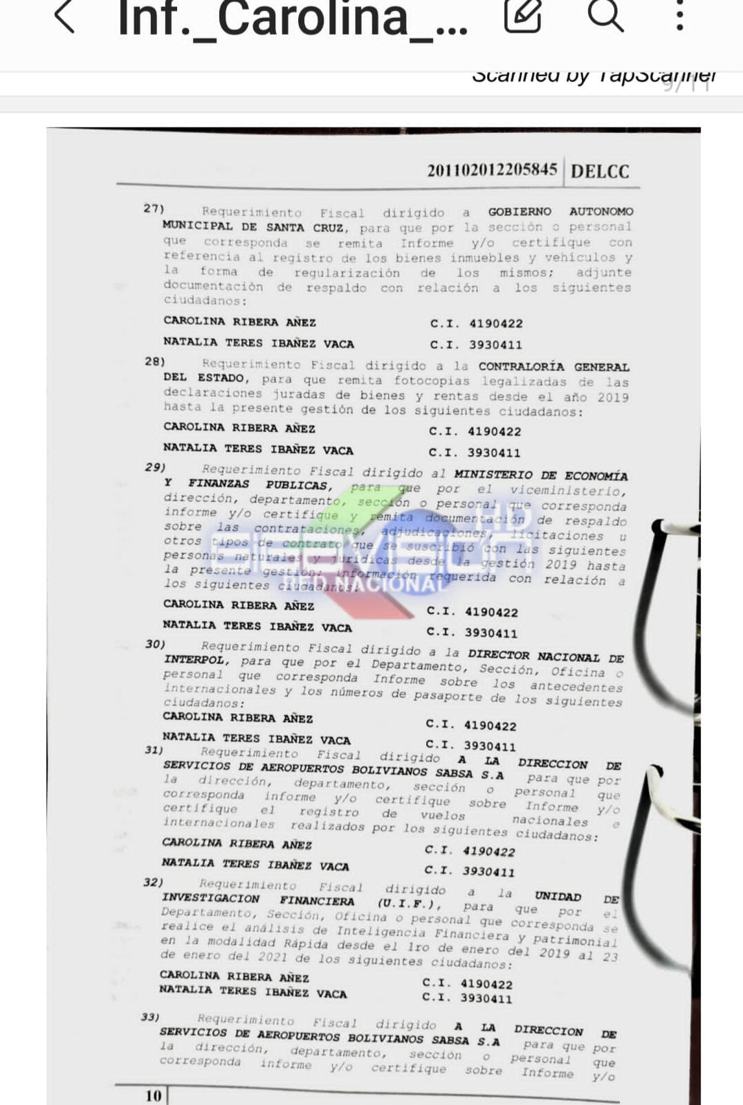 #LaPaz Fiscalía investiga a hija de Jeanine Añez por presunta Legitimación de Ganancias Ilícitas, hicieron 32 requerimientos sobre Carolina Ribera.