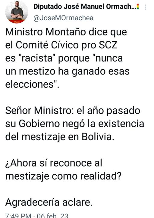 «Su gobierno negó la existencia del mestizaje en Bolivia» responde diputado de #CC a Montaño