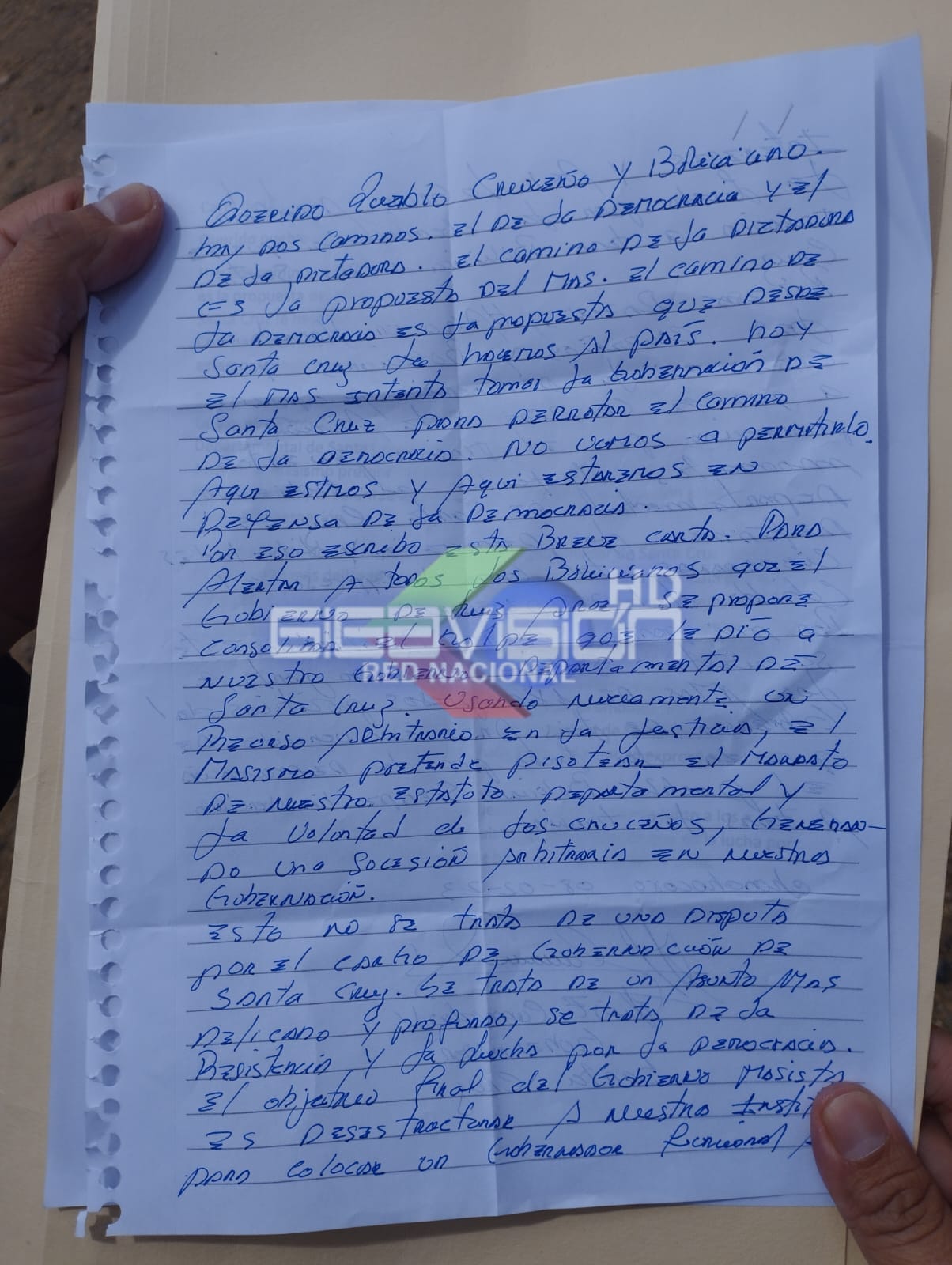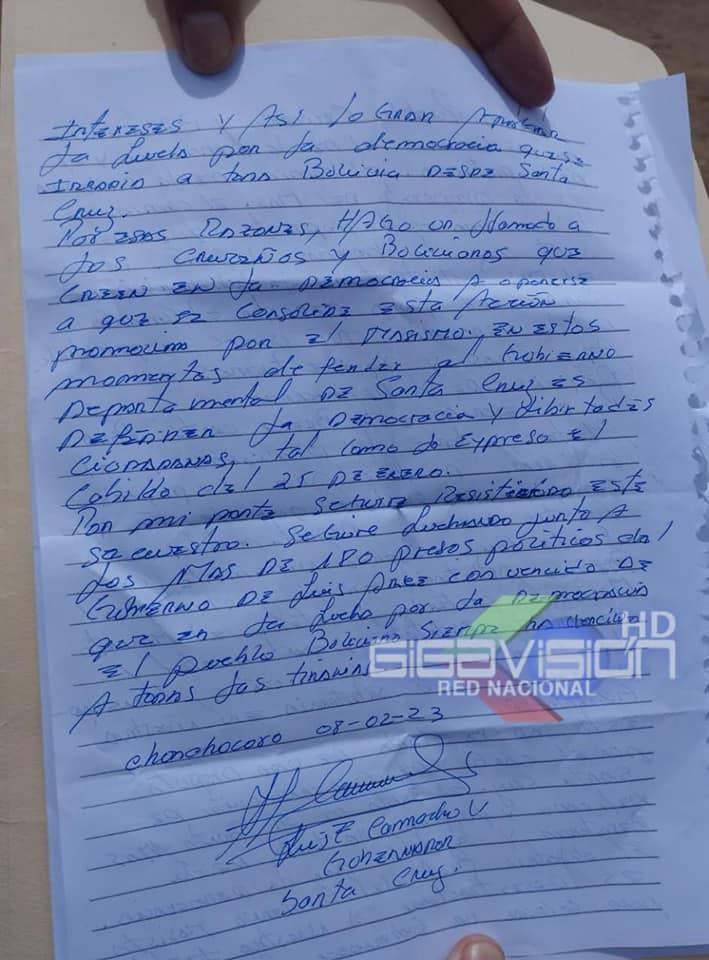 Por eso escribo esta breve carta. Para alertar a todos los bolivianos que el Gobierno de Luis Arce se propone consolidar el golpe que le dio a nuestro Gobierno Departamental de Santa Cruz. Usando nuevamente un recurso arbitrario en la Justicia, el masismo pretende pisotear el mandato de nuestro estatuto departamental y la voluntad de los cruceños, generando en sucesión arbitraria en nuestra Gobernación.