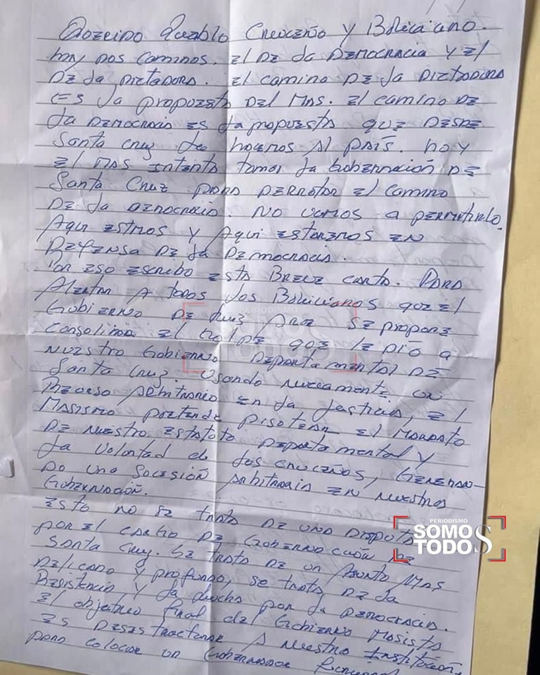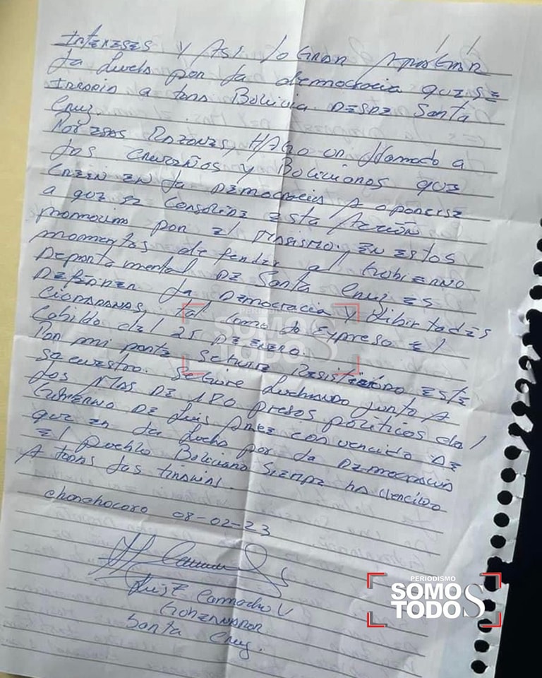 Desde su encierro el Gobernador, envió una carta con un mensaje a la poblacion, antes de la audiencia judicial donde podría definirse su suspensión del cargo.