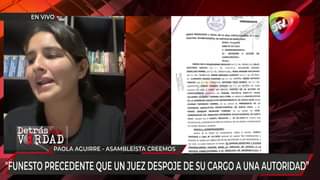 La asambleísta departamental de Creemos, Paola Aguirre, denuncia que el MAS pretende tomar el poder en la gobernación de Santa Cruz con la acción de cumplimiento interpuestas por asambleístas del MAS que exigen que el Vicegobernador Mario Aguilera asuma en suplencia de Luis Fernando Camacho.