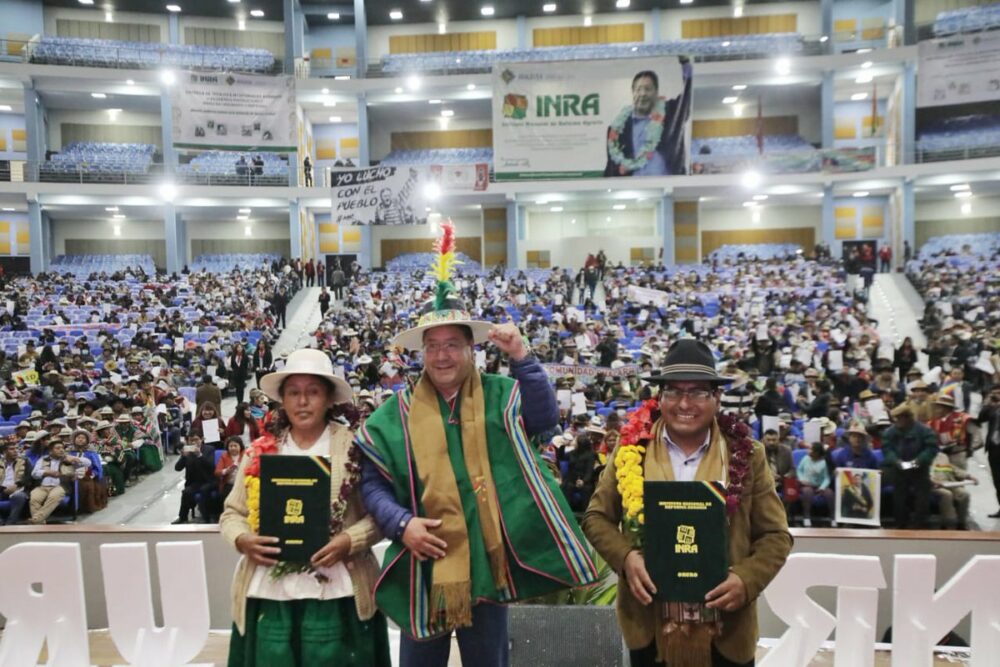 En un día histórico para #Oruro, entregamos 3.612 títulos agrarios de propiedad a nuestras familias productoras. Este es el resultado de la lucha de nuestros pueblos y que hoy nos permite garantizar nuestra seguridad alimentaria con soberanía.