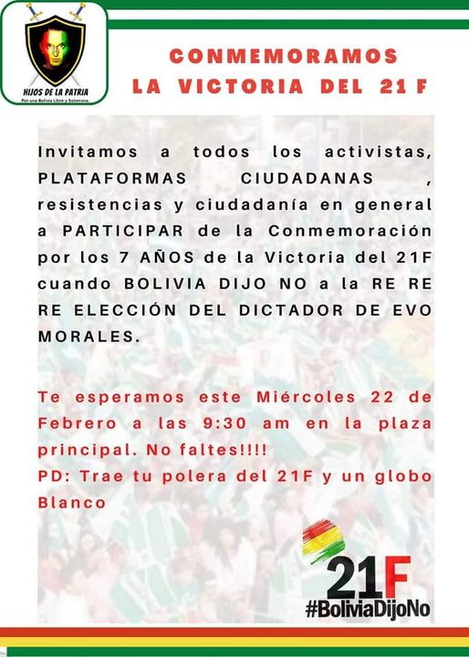 Activistas invitan a la población a asistir a la concentración este miércoles 22 de febrero a las 9 :30 am en la Plaza 24 de Septiembre para conmemorar los 7 años de la victoria del #21F
