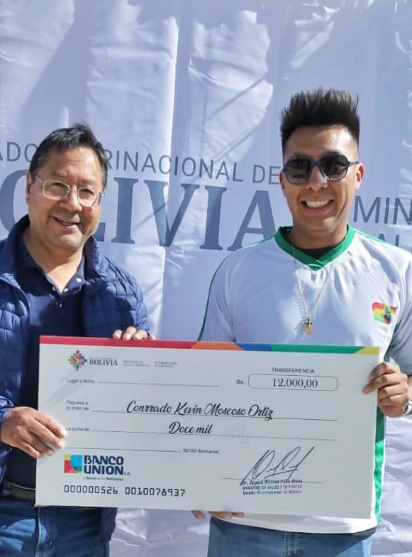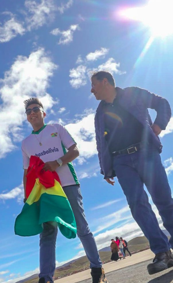 Hoy en #Oruro nos encontramos con nuestro amigo y Campeón Mundial de Ráquetbol, Conrrado Moscoso. Le dimos un reconocimiento por llevar a lo más alto el nombre de #Bolivia🇧🇴 y ahora, en la tierra del folklore, nos dirigimos a vivir el grandioso Festival Nacional de Bandas 2023. https://t.co/1pVgTdaQr6