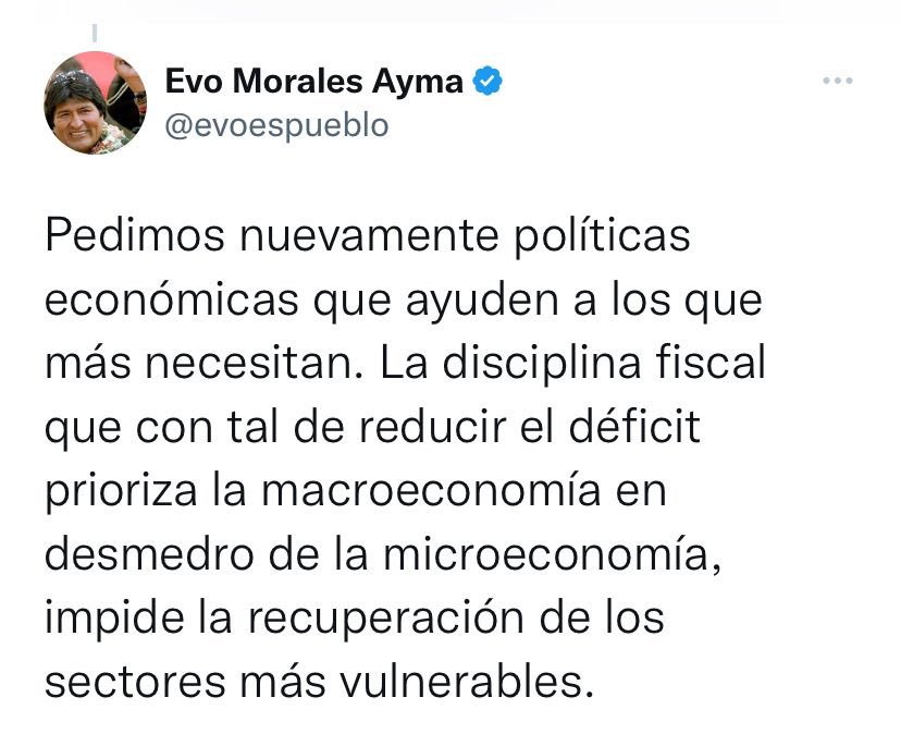 Evo Morales pide más déficit fiscal. Se equivoca si cree que eso beneficia a los más vulnerables; es al revés: una crisis golpearía más a los pobres. Ojo, el gobierno tampoco mantiene la “disciplina fiscal”; sigue priorizando la burocracia sobre el crecimiento. https://t.co/Yzav4ADvwS