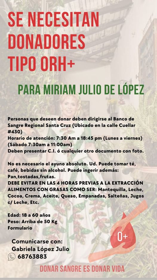 Miriam necesita donadores tipo ORH+