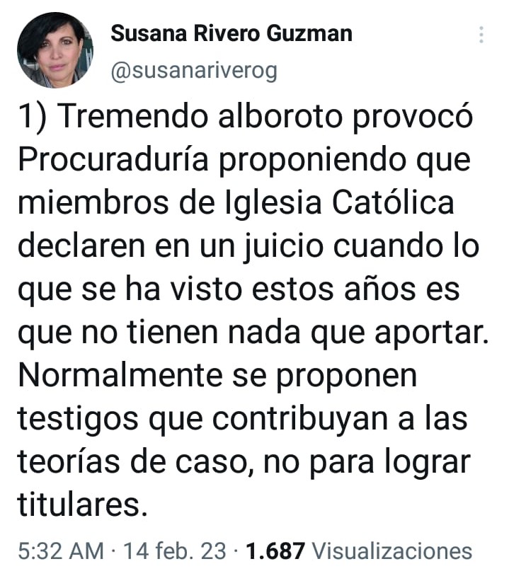 Exministra Rivero arremete contra el Procurador, dice que al pedir que citen a obispos solo busca titulares