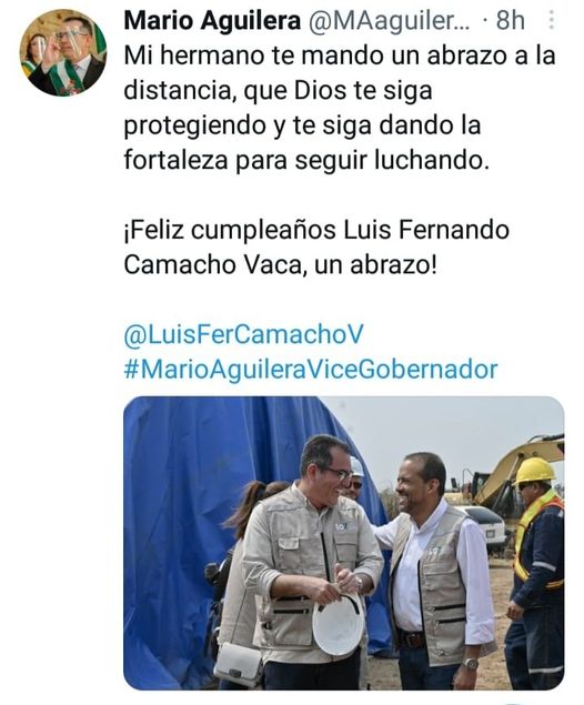 Vicegobernador a través de sus redes sociales felicita a Camacho por su cumpleaños