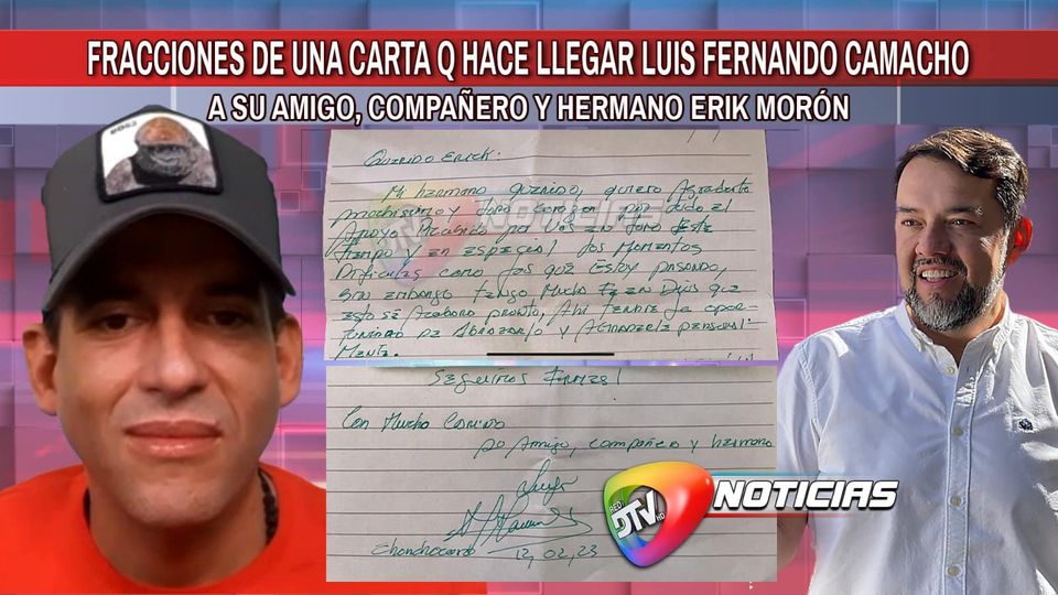 Camacho le escribe desde Chonchocoro a Erik Morón, a quien lo califica como su “amigo, compañero y hermano”Categorías NoticiasEtiquetas , Detrás de la Verdad, DTV, Facebook 16/02/2023 [vid_embed] Fuente: DTV => Recibir por Whatsapp las noticias destacadas