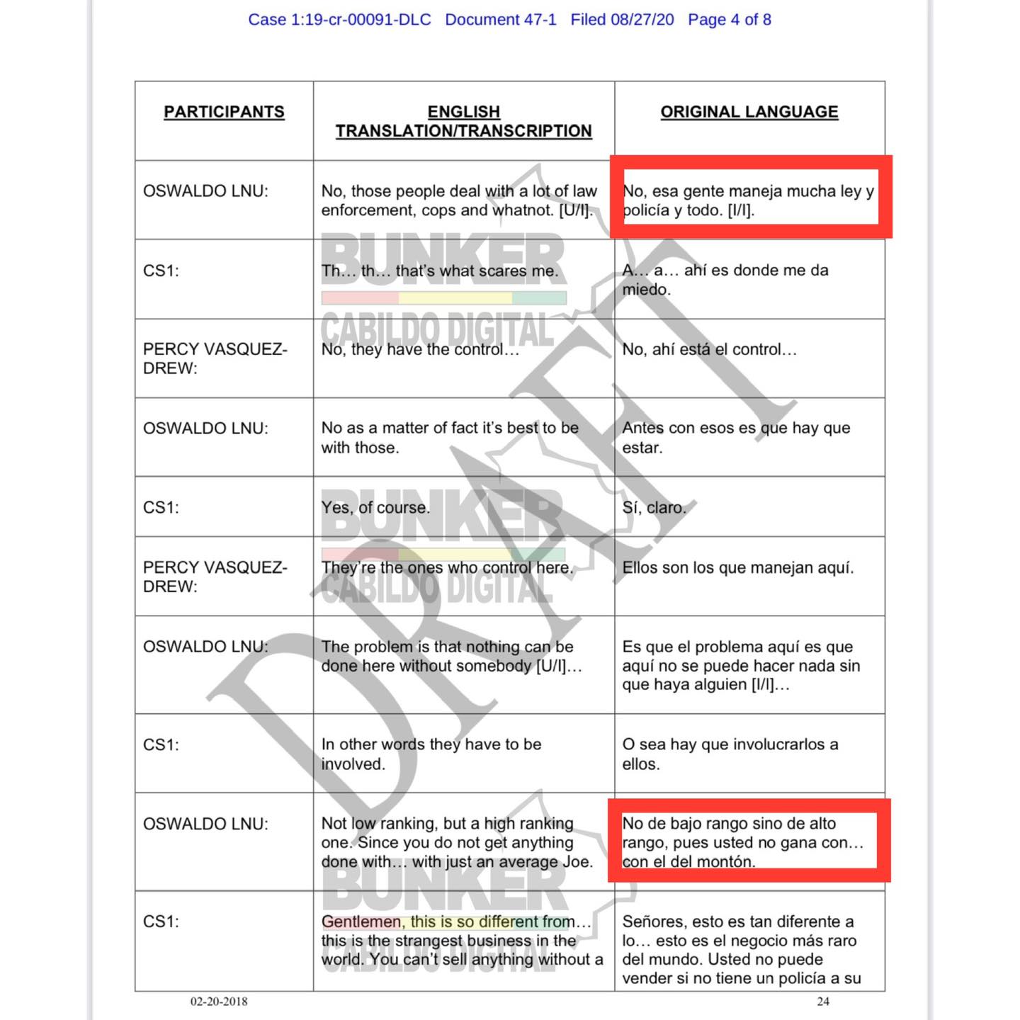 Al documento al cual El Búnker tuvo acceso en primicia habla de altos funcionarios de gobierno que pondrían policías y militares a disposición de los ‘narcos’. La llamada se habría realizado el 20 de febrero de 2018.