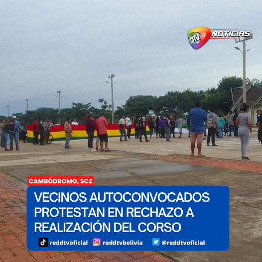 Vecinos autoconvocados PROTESTARON en rechazó a la realización del corso, se lanzaron al piso impidiendo que los camiones ingresen para el armado de tarimas, señalan que no tienen nada que festejar por la aprehensión del Gobernador Luis Fernando Camacho y por la emergencia del dengue.