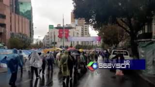 #Antes del inicio del Corso Infantil del Carnaval 2023. Un grupo de cocaleros de ADEPCOCA marcharon en lluvia por la ruta del Corso Infantil en la Av. Mariscal Santa Cruz y el Prado de la sede de gobierno, consultados por la prensa sobre la movilización la dirigencia cocalera sólo indicó que se movilizan por que tienen previsto realizar un congreso ordinario de su sector.