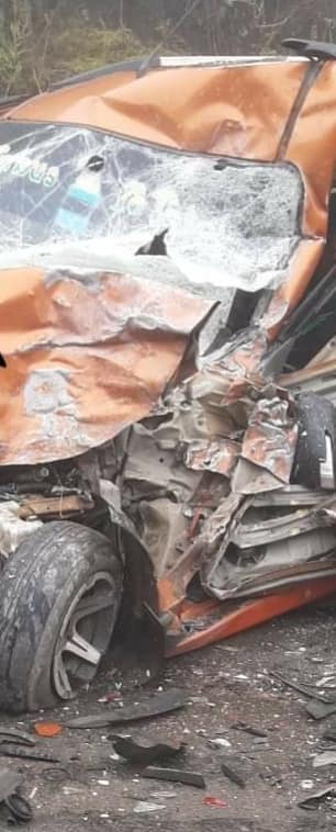 Accidente de tránsito en la carretera a los Yungas, en el tramo asfaltado a Coroico y el Norte Paceño, entre un camión grúa de la policía y un vehículo tipo Noha, chocaron de frente y perdió el vida el chófer del vehículo tipo Noha.