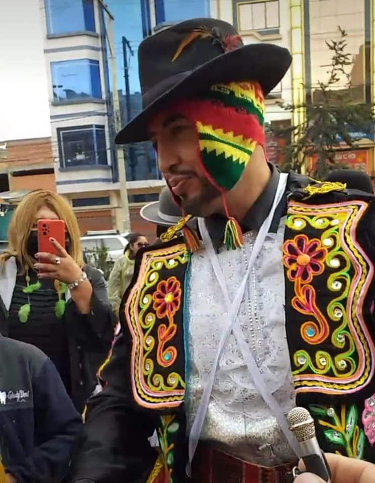 Franco de la Cuenca, más conocido como «el Inca del Gran Poder», participó en la entrada del Anata Andino que se realizó en la avenida Juan Pablo II, en la ciudad de #ElAlto. Participo de con el tradicional traje de Ch’uta.