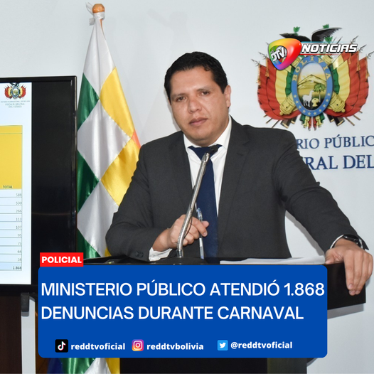 El director de Gestión Fiscal, Supervisión y Evaluación de la fiscalía general del Estado, Roberto Almendras, informó que, en el marco del Plan de Contingencia por las fiestas de Carnaval, del 16 al 21 de febrero de 2023, el Ministerio Público atendió 1.868 denuncias, entre ellas, un hecho de Feminicidio que se encuentra con el presunto autor detenido preventivamente en el penal de Chonchocoro. La Paz, Santa Cruz y Cochabamba fueron los departamentos con más denuncias.