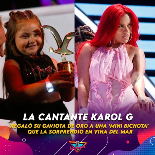 Una niña llamada Matilda se subió al escenario con un cartel que decía: “Esta mini bichota quiere bailar contigo”; enseguida, se puso a hacer algunas piruetas y Karol G quedó tan sorprendida que le obsequió la Gaviota de Oro con la que recién la habían premiado. Vale recordar que, es la primera vez que la colombiana recibe dichas estatuillas, el acto enterneció al público y a los usuarios en redes sociales. ❤️☺️