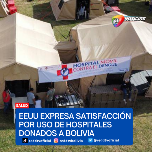 La Embajada norteamericana publicó en redes sociales : «Muy satisfechos de que los hospitales donados por el gobierno de EEUU sean de utilidad para el pueblo boliviano en la lucha contra el dengue�#JuntosContraElDengue«