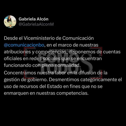 La respuesta de la viceministra Gabriela Alcon ante la denuncia de Evo Morales en Twitter sobre el pago a “Guerreros Digitales”