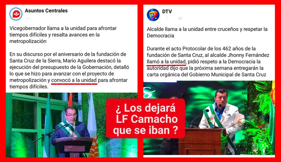 El Vice gobernador – casi gobernador – y el Alcalde desde de sus dos actos por la fundación de SC dejaron en evidencia 👁️‍🗨️lo que se viene cuando Mario asuma como gobernador – si así lo deja la Asamblea cruceña -.
