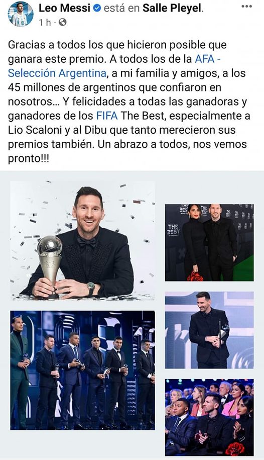 #Messi es el ganador del Premio FIFA THE BEST al mejor jugador del 2022