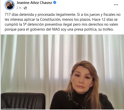 Añez: «Mis derechos no valen porque para el gobierno del MAS soy una presa política, su trofeo»