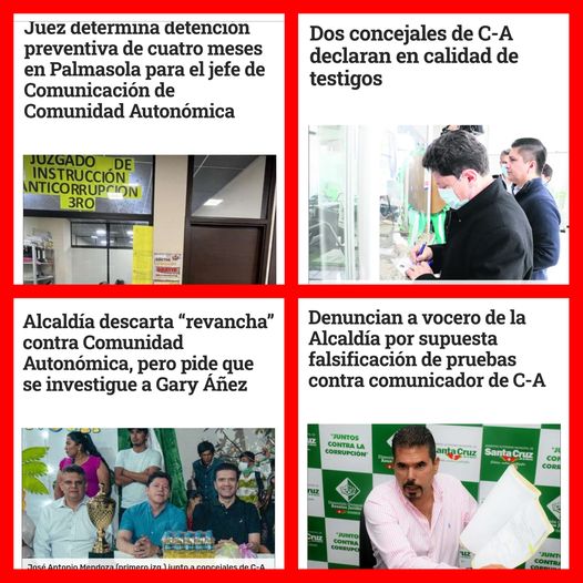 Según Bernardo Montenegro 🔵, vocero de Asuntos Jurídicos, Comunidad Autonómica tenía una planilla de personal equivalente a más de Bs 500.000 mensuales dentro de la Alcaldía, como parte de alianza de gobernabilidad pactada con UCD. Y aseguró que cada uno de estos funcionarios debía aportar Bs 300 mensuales a la alianza opositora.