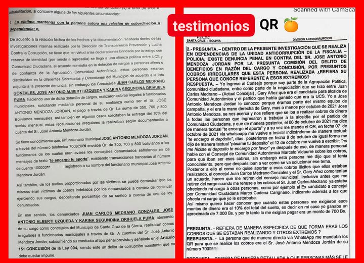 El Ministerio Público con la investigación policial logró tener testimonios de funcionarios 🍊 que cuentan que los obligaron a poner desde Bs. 300, 500, 700 y hasta 800 mensuales y a los que no pudieron los volaron de las pegas.