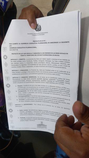 El diputado del MAS, Juan José Huanca, elaboró un proyecto de ley para regular y sancionar las noticias y cuentas falsas en las redes sociales con una pena hasta de siete años de cárcel. “El proyecto de ley que regula y sanciona el uso indebido de las redes sociales en todo el territorio del Estado Plurinacional de Bolivia (…), lo más importante en esta normativa específica (es que) le estamos dando una sanción de cinco a siete años de cárcel”, dijo Huanca.