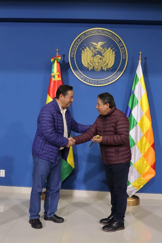 (Hilo) Entregamos el Bastón de Mando al jilata vicepresidente, @LaramaDavid, antes de viajar a #Venezuela, atendiendo la invitación del hermano Pdte. @NicolasMaduro, para el Encuentro Mundial por la Vigencia del Pensamiento Bolivariano del Cmte. #HugoChávez en el Siglo XXI. https://t.co/rjDp61JCpt