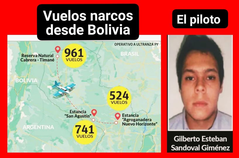Gilberto Esteban Sandoval Giménez, uno de los 25 imputados y que siguen prófugos, incluido Sebastián Marset, habría realizado 961 vuelos 🛩️, según registros de antenas de celulares, en el marco del trasbordo de la cocaína que ingresaba desde Bolivia y su posterior traslado hasta Presidente Hayes y San Pedro, Paraguay. ,,