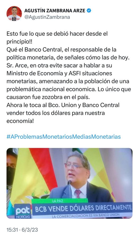 Sr. Arce, en otra evite sacar a hablar a su Ministro de Economía y #ASFI situaciones monetarias, amenazando a la población de una problemática nacional economica. Lo único que causaron fue zozobra en el país.