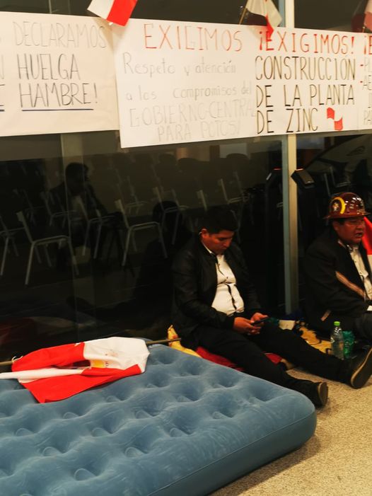 Los senadores Hilarión Mamani y Pedro Benjamín Vargas de Potosí, instalan huelga de hambre en pasillos de la Asamblea Legislativa, exigiendo la construcción de una planta de zinc y obras para el departamento.