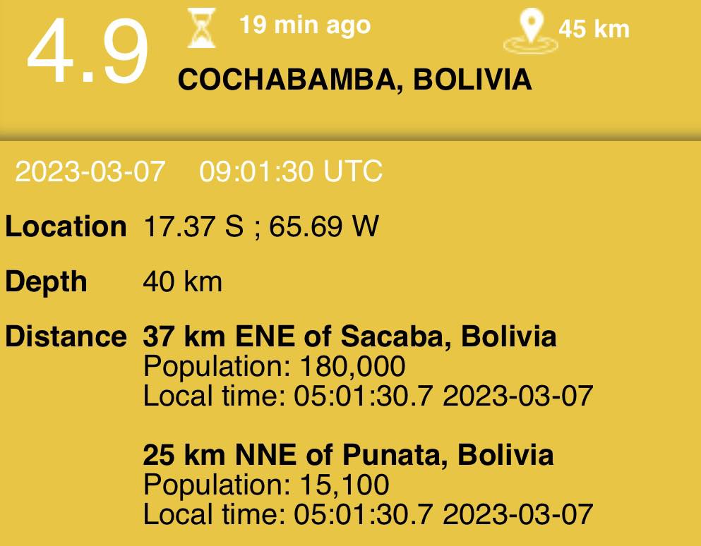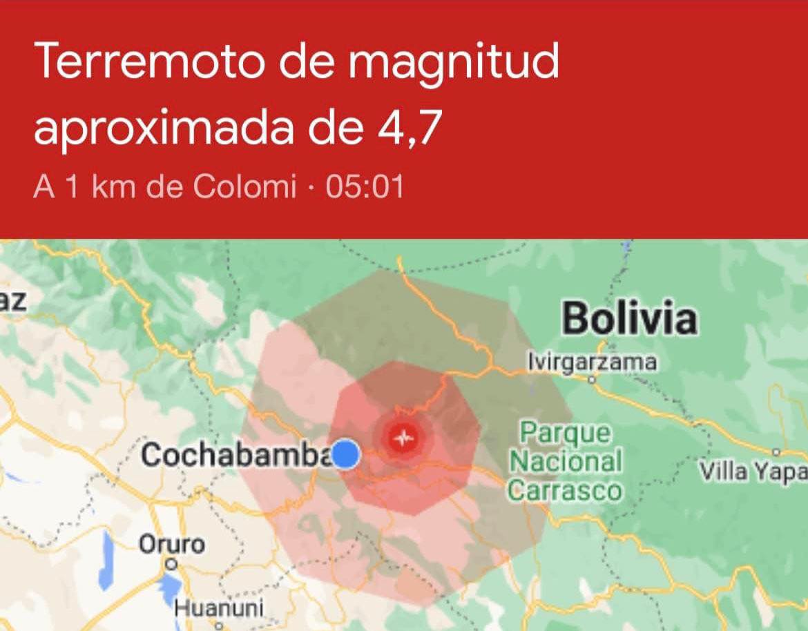 Se registra en #Cochabamba un temblor terremoto a las 5:00 a.m. aprox.