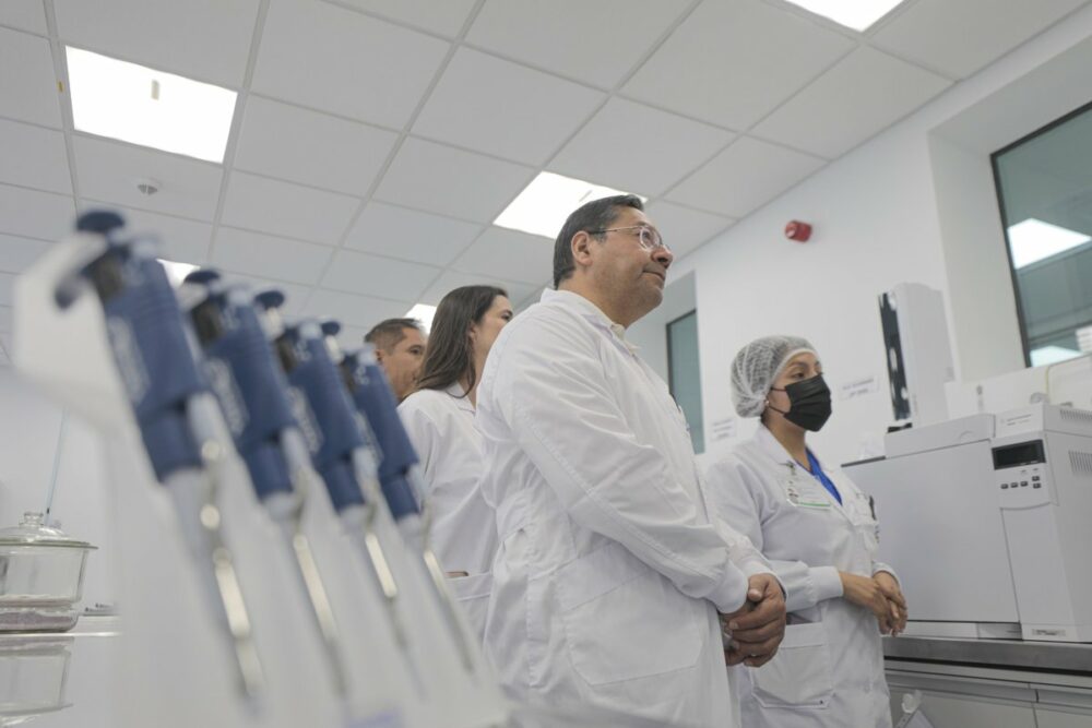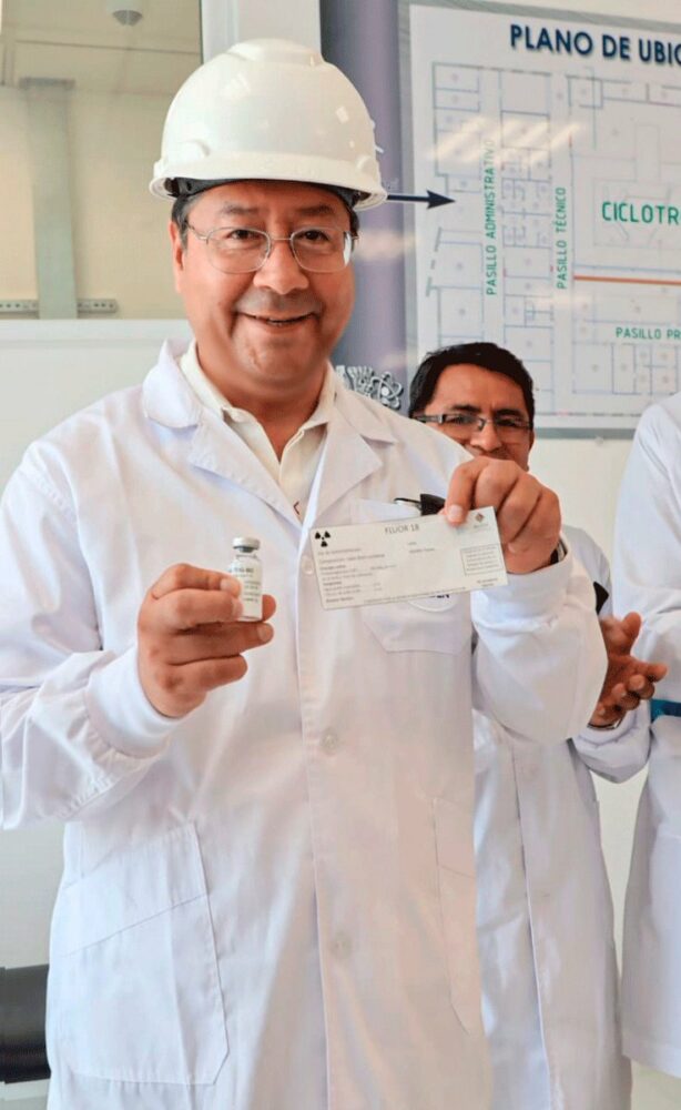 (Hilo) En un hito histórico para #Bolivia, nuestro Complejo Ciclotrón Radiofarmacia Preclínica de #ElAlto inició la producción soberana de radiofármacos Fluorodesoxiglucosa – FDG para la atención de pacientes con cáncer en la Red de Centros de Medicina Nuclear y Radioterapia. https://t.co/1wAZOWMfMn