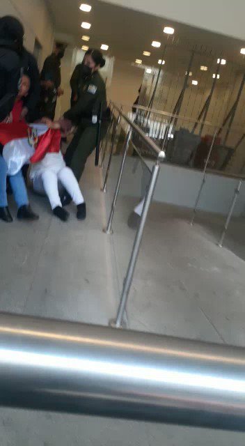 Policías desalojaron de la Asamblea por la fuerza y arrastrando por el piso a Roxana Graz y dirigentes del Comité Cívico Potosinista, quienes habían instalado una huelga de hambre en los predios del Legislativo exigiendo la Ley del Litio.