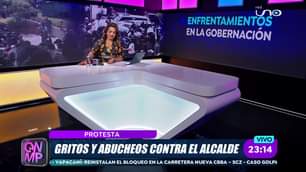 #SantaCruz | Gritos y abucheos al alcalde Jhonny Fernández, le lanzaron una botella.