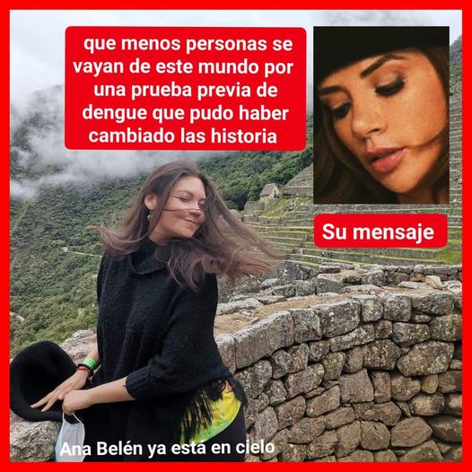 Pese al dolor de la familia, hoy su mami, mi tía Any a quien quiero y admiro mucho, me pidió que la partida de su hija Ana Belén Serrano Ángulo no sea en vano y que pueda ayudar a otras personas a prevenir pérdidas tan dolorosas como la nuestra.