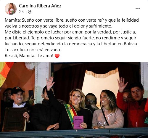 «Sueño con verte libre, sueño con verte reír y que la felicidad vuelva a nosotros y se vaya todo el dolor y sufrimiento» palabras de la hija de Añez a dos años de su detención de su madre