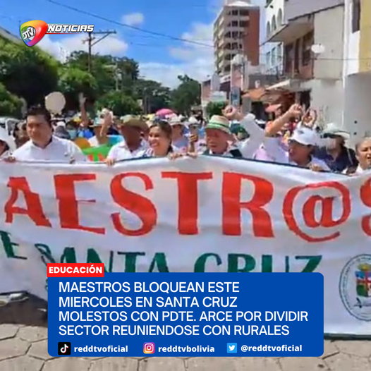 Maestros acusan a Pdte. Arce de dividir al sector reuniendose con los Rurales, ratifican bloqueos este miercoles en Santa Cruz.