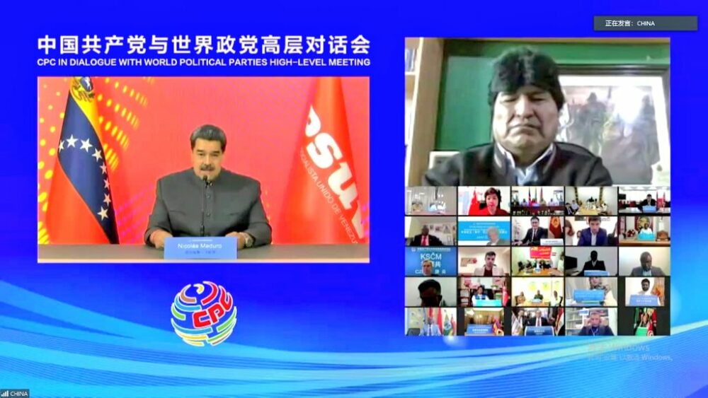 Participamos del Diálogo de Alto Nivel entre el PCCh y Partidos Políticos del Mundo. Compartimos con el Presidente Xi Jimping la propuesta: de que la modernización beneficie a los pueblos, promoviendo el multilateralismo, el respeto a la vida y la naturaleza para la paz mundial. https://t.co/AUl3o0C19D